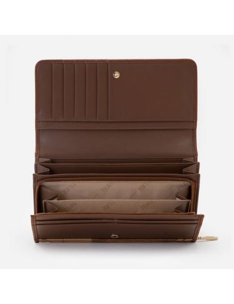 La Linea Valley Geo offre al portafoglio con patta lo stile iconico del brand declinato secondo l'estetica di Collezione. Il tessuto Geo Classic è rifinito da dettagli in pelle granata fine, tra cui il listino con fibbietta oro chiaro logata 1C. Dagli interni capienti e suddivisi in numerose tasche, è un modello dall'animo raffinato, perfetto per ogni esigenza.