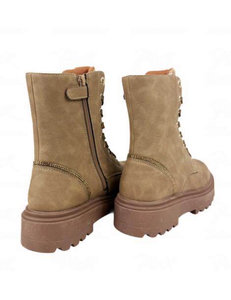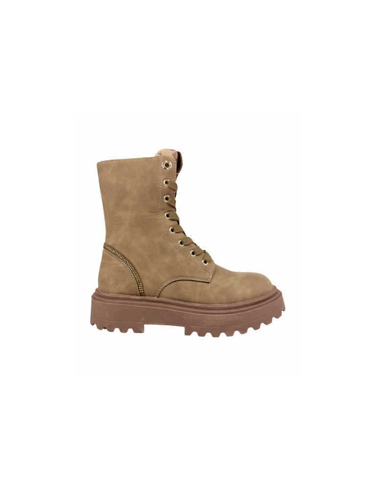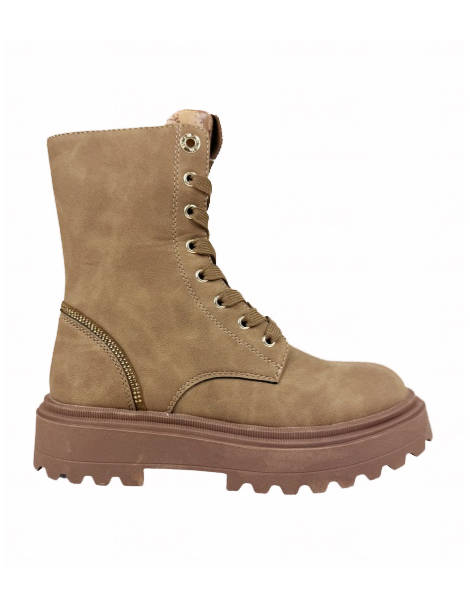 ANFIBIO IN PELLE SCAMOSCIATA CON INSERTI IN STRASS E CHIUSURA CON LACCI E ZIP LATERALE. GAMBALE ALTO 11CM