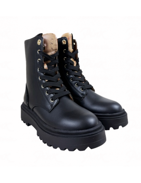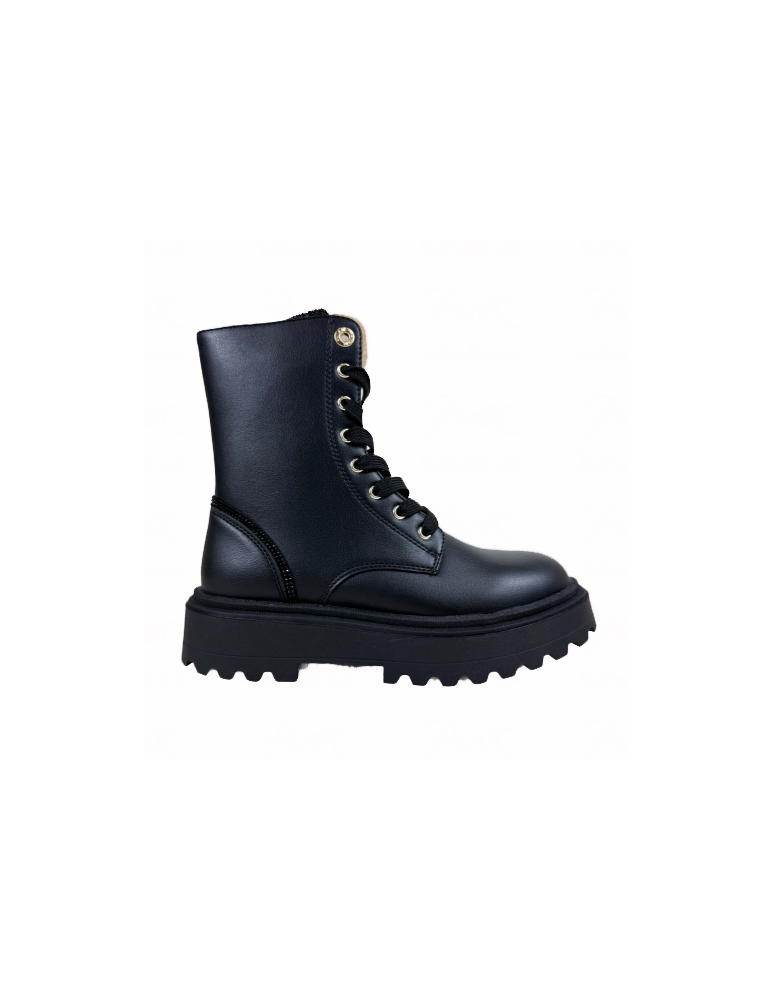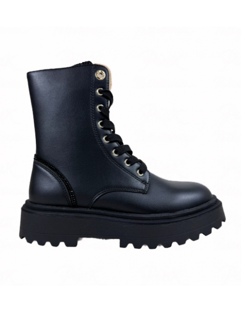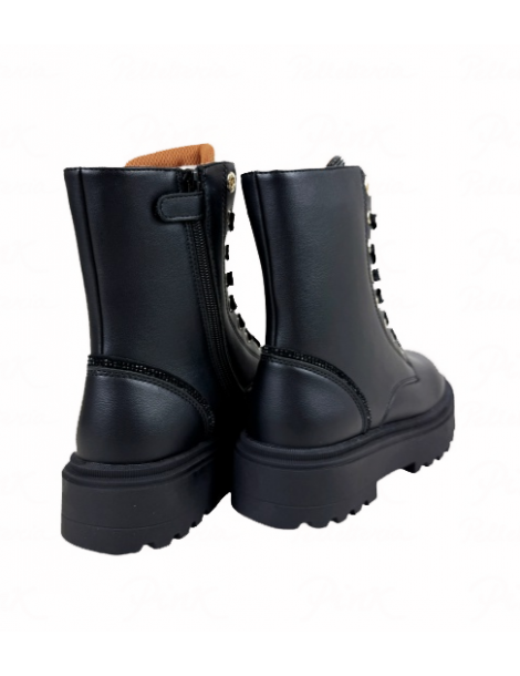 ANFIBIO IN PELLE CON INSERTI IN STRASS E CHIUSURA CON LACCI E ZIP LATERALE. GAMBALE ALTO 11CM