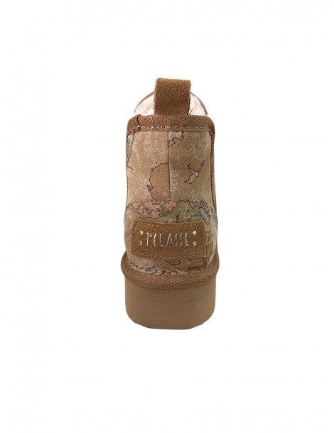 HALF BOOT CON PELLICCIA INTERNA. STAMPA GEO E SUOLA IN GOMMA ALTA 3CM