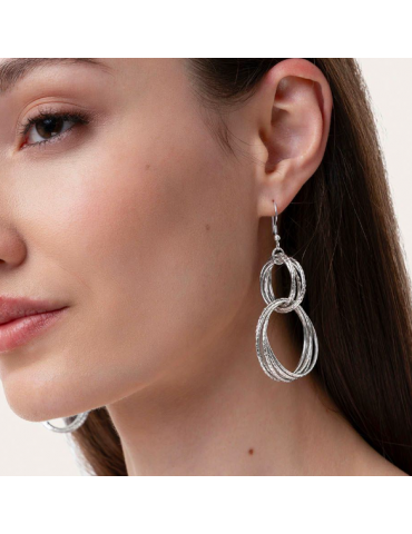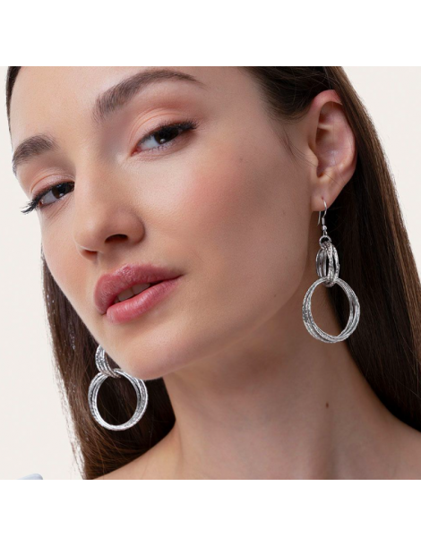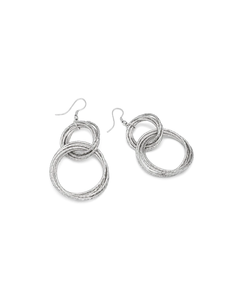 Orecchini pendenti a cerchi multipli martellati, riflessi irregolari che catturano la luce con eleganza. Ideali per completare look da cerimonia o per dare luminosità al daily wear. Placcatura argento 100% artigianale. Nickel tested. Lavorazione artigianale. Gioielli fatti a mano, unici e artigianali, perfetti per tutti i tuoi look o come idea regalo.