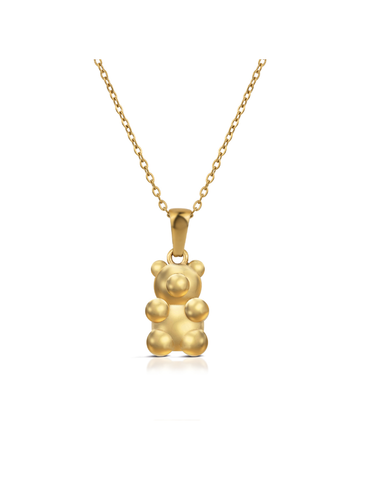 Collana in acciaio lucido con trattamento PVD oro giallo. Pendente a forma di orso Personalizzata OPS!. Lunghezza regolabile da 40 a 45 cm.