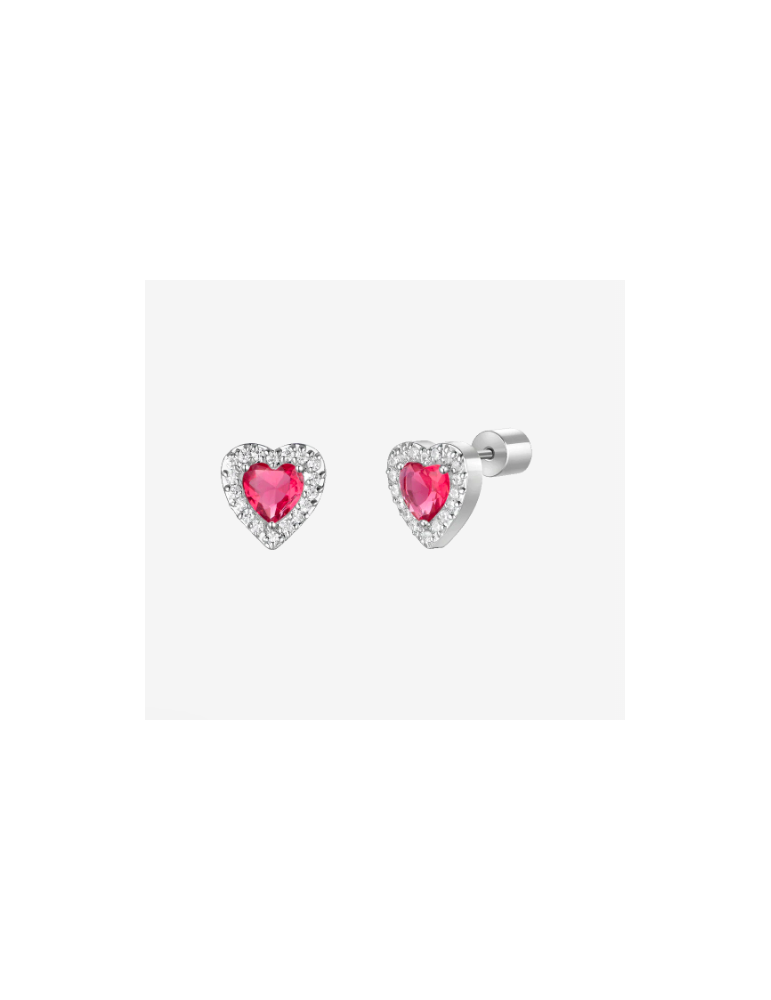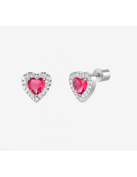 ORECCHINI DONNA IN ACCIAIO CON CUORI CON ZIRCONI ROSSI E BIANCHI