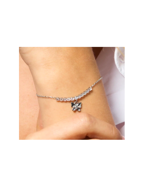 BRACCIALE DONNA IN ACCIAIO CON FARFALLA E ZIRCONI BIANCHI