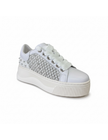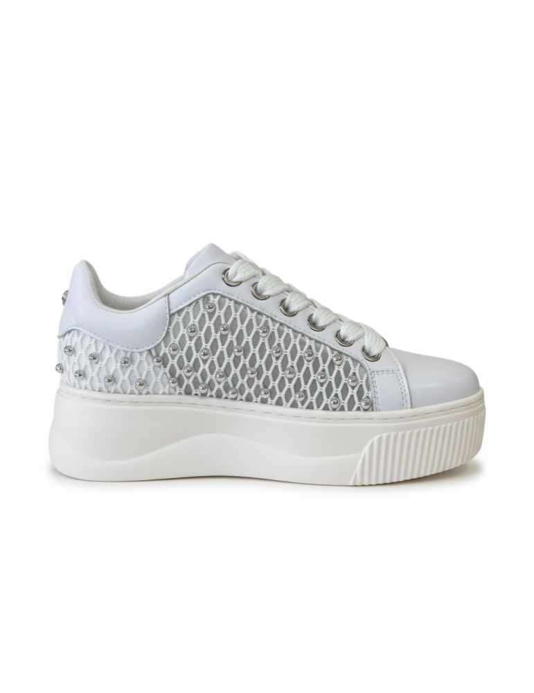 Sneakers da donna con suola platform e inserti in rete decorati con piccoli dettagli metallici. Un modello moderno e femminile perfetto per look casual e di tendenza.