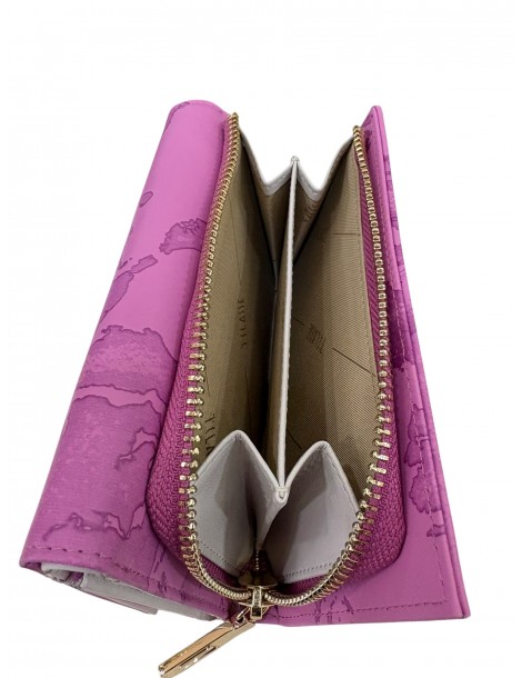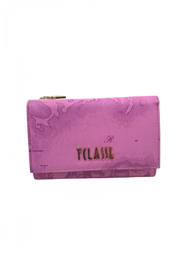 Portafoglio medio Alviero Martini 1ª Classe in colore mauve con stampa Geo, elegante e funzionale.