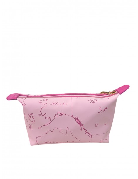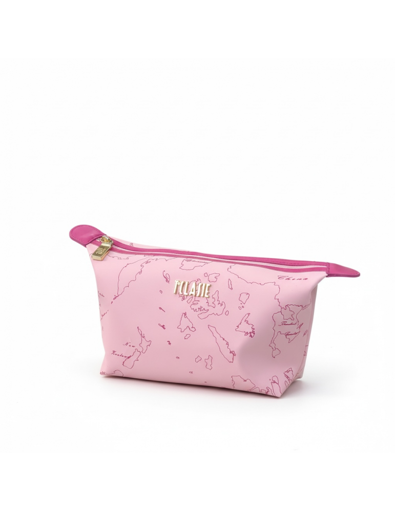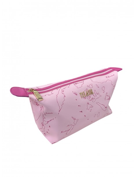 Elegante beauty case firmato Alviero Martini 1ª Classe, caratterizzato dall’iconica stampa geografica del brand.