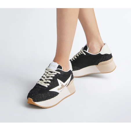 Sneakers platform in denim Black