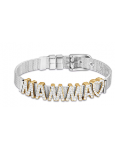 DROP T IN ACCIAIO IP GOLD CON CRISTALLI BIANCHI