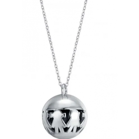 Collana Chiama Angeli in acciaio con bambini di Luca Barra, referenza . Pendente in acciaio con sfera interna in metallo.Lunghezza regolabile da 90 a 100 cm.
