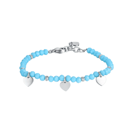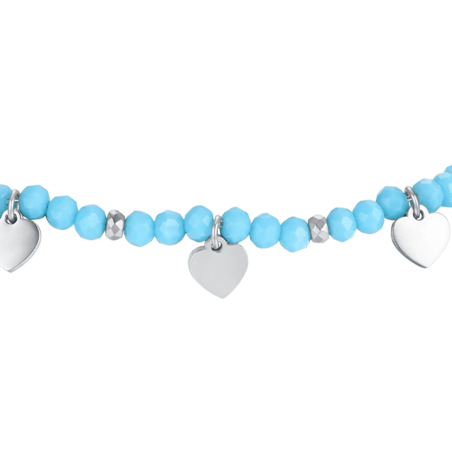 Bracciale bimba in acciaio con pietre turchesi e cuori