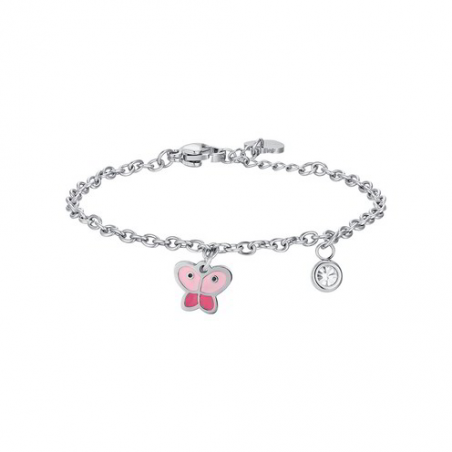 Bracciale Bambina Luca Barra Happy - JB188 Un brand a livello mondiale che riesce a sorprendere con il suo stile eclettico e d'impatto. Questo gioiello è realizzato in acciaio 316l anallergico. Con ciondolo e il cristallo pendenti. La misura è di circa 15 cm