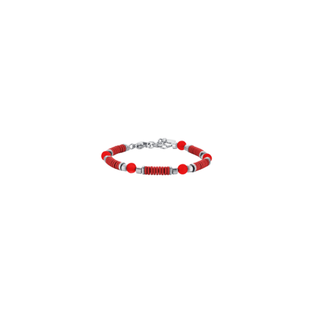 BRACCIALE BAMBINA IN ACCIAIO CON PIETRE ROSSE ED ELEMENTI CON SMALTO GIALLO