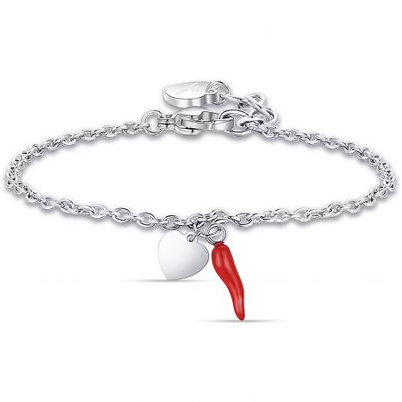 Bracciale da bambina di Luca Barra. Bracciale realizzato in acciaio con corno rosso e cuore. Lunghezza: 14 + 2 cm