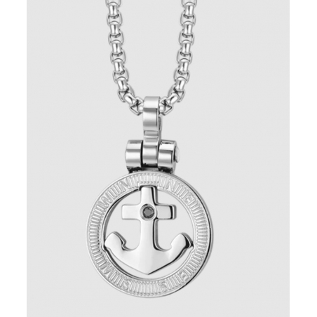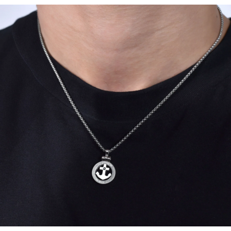 COLLANA UOMO IN ACCIAIO ANCORA E CRISTALLO NERO