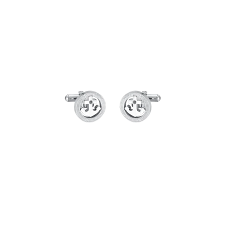 GEMELLI UOMO IN ACCIAIO ANCORA E CRISTALLO NERO
