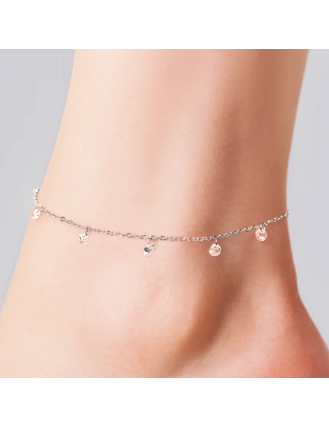 Cavigliera Donna in acciaio con zirconi rosa. Lunghezza: 22 + 3 cm. Spessore catena: 2 mm. Diametro zirconi: 4 mm. La combinazione di dettagli raffinati rende questa cavigliera un accessorio versatile per molteplici occasioni. Grazie al suo design semplice ma chic, questa cavigliera può essere indossata con diversi tipi di outfit, dai casual ai più formali. Gli zirconi rosa, noti per la loro capacità di riflettere la luce, creano un effetto scintillante e grazioso, aggiungendo un tocco di luminosità a qualsiasi look