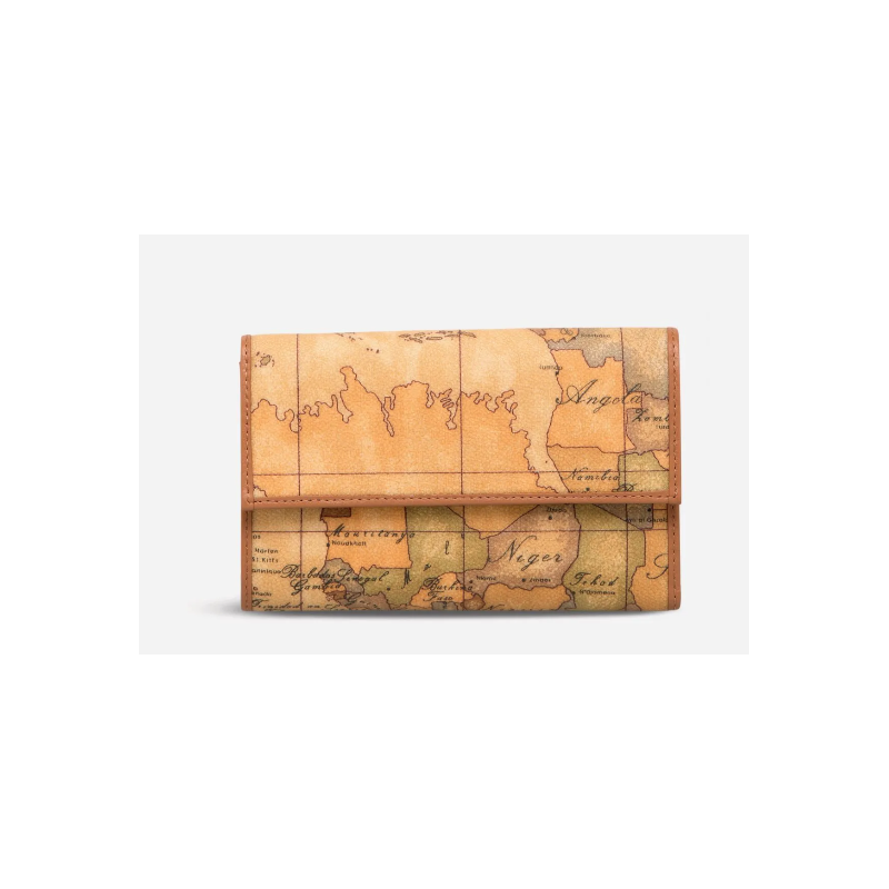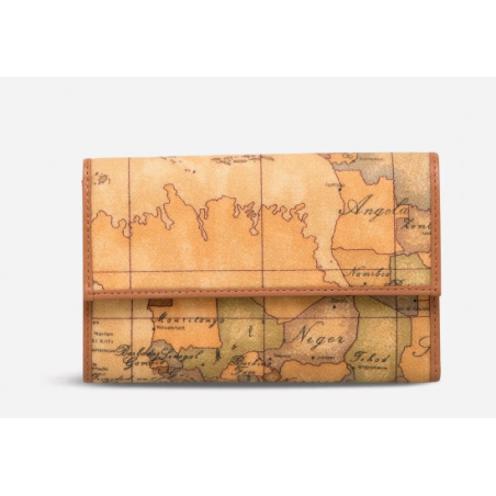 Portafogli donna in tessuto stampato con cartina geografica Geo Classic, accessoriato con tasca portamonete esterna, due sezioni per banconote, quattro scomparti per ricevute, sedici per carte di credito. Si chiude con un pratico bottone con zip. Molto capiente grazie alla dimensione grande, ti permetterà di tenere tutto perfettamente in ordine.