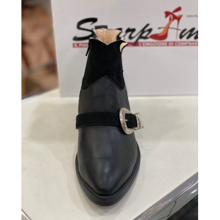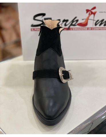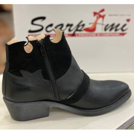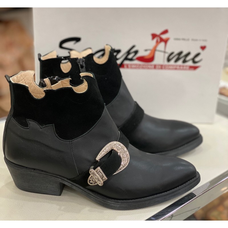 Texano un vera pelle e camoscio. Chiusura con cerniera. Fibbia Argento