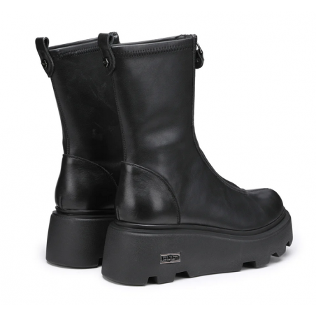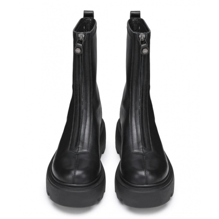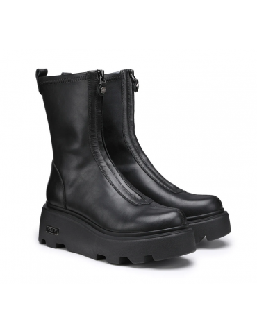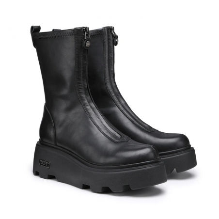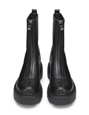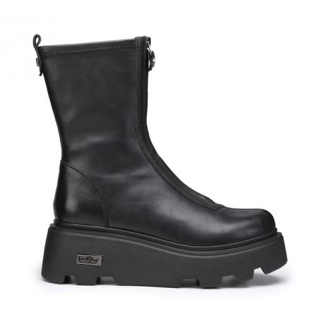 Date una marcia in più ai vostri outfit indossando questi stivaletti firmati Cult. Il design di tendenza in pelle nera attraversato da una zip frontale, presenta la suola platform scanalata.