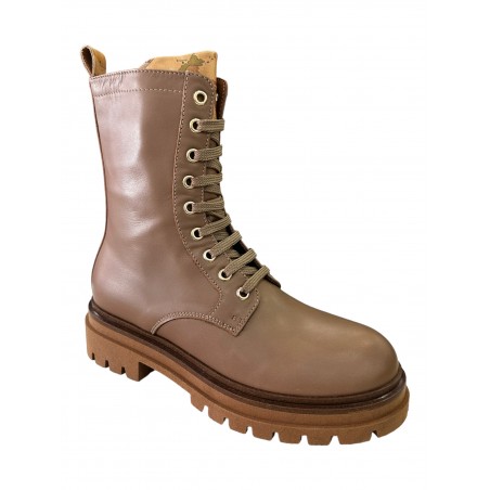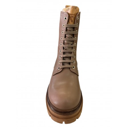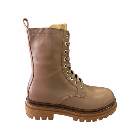 Anfibi stringati Alviero Martini 1ª Classe Junior realizzati in pelle di colore SABBIA La soletta interna è caratterizzata dall'iconica stampa Geo Classic. La calzata è favorita dalla zip laterale. Il fondo con battistrada bentellato è in gomma antiscivolo