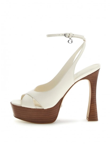 Sandalo in pelle nera o nude con cinturino alla caviglia e tacco grosso di 12 centimetri e platform