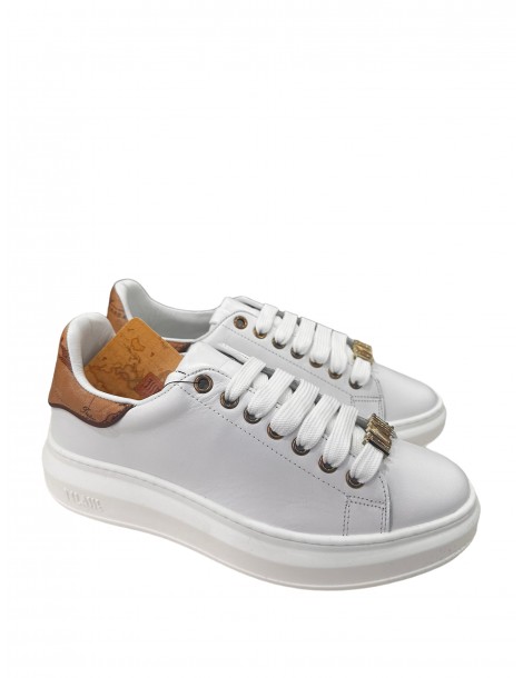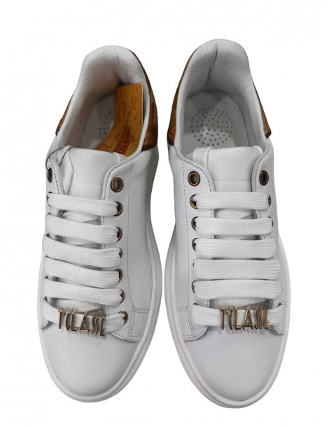 Sneakers in vera pelle con inserto geo classic bella parte alta del tallone . Scritta 1classe removibile dai lacci. Altezza tacco 4 cm