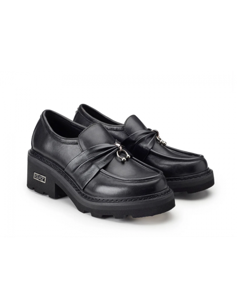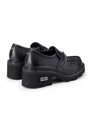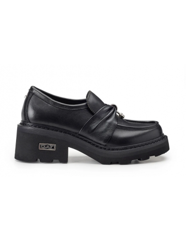 Cult reinterpreta i classici mocassini in pelle su un nuovo piano di stile, con l’aggiunta di maxi suole platform e comodo tacco a blocco per un effetto bold. La fascia in pelle con il piercing arricchisce il modello, rendendolo più grintoso.