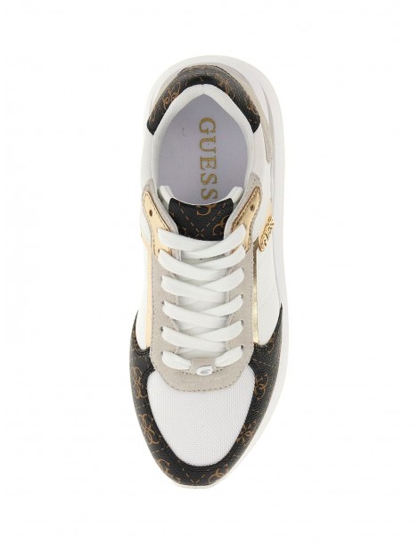 SNEAKERS IN PELLE E TESSUTO TECNICO CON LOGO LATERALE - ZEPPA 4 CM -
