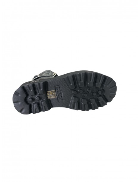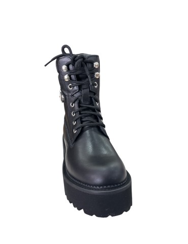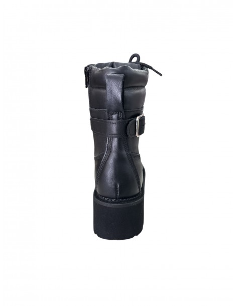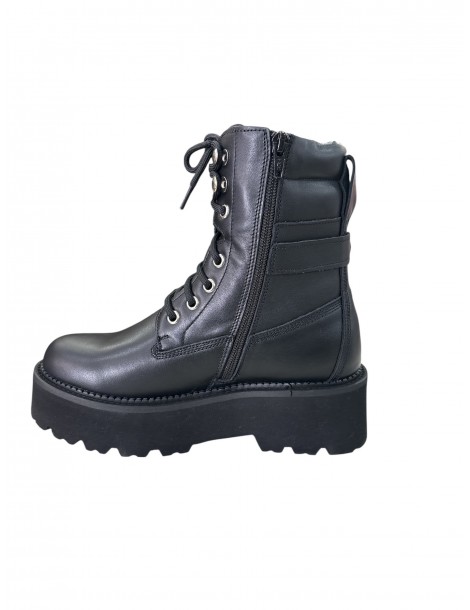 ANFIBIO CON CHIUSURA CON LACCI E ZIP LATERALE ADORNATO DA UN FINTO CINTURINO SUL GAMBALE. GAMBALE ALTO 10CM E SUOLA IN GOMMA PARA ALTA 4CM.