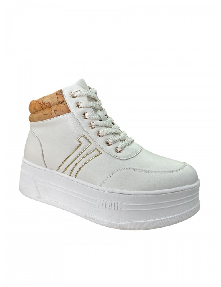 SNEAKER ALTA CON INSERTO GEO E LOGO 1C COLOR ORO SUL LATO. CHIUSURA CON LACCI E SUOLA IN GOMMA ALTA 5CM