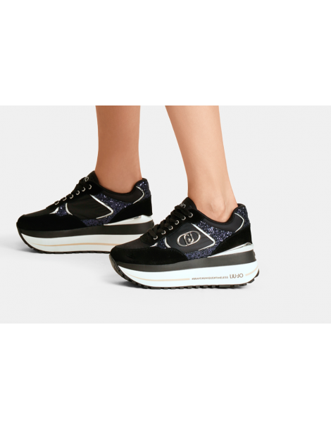 Sneakers super platform in glitter e nylon