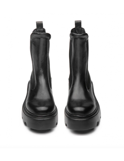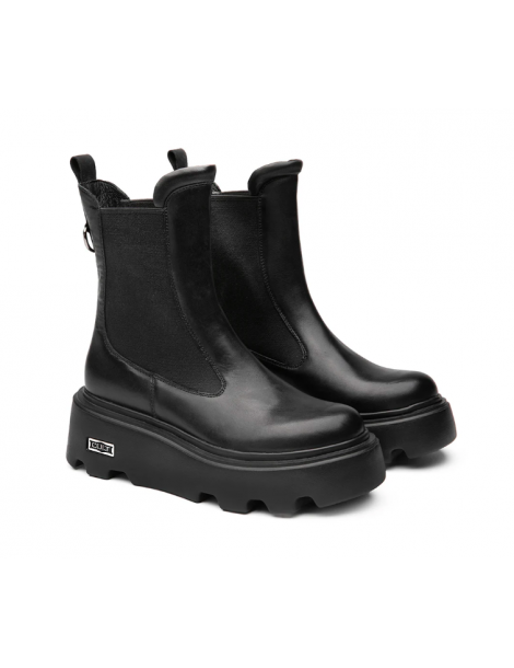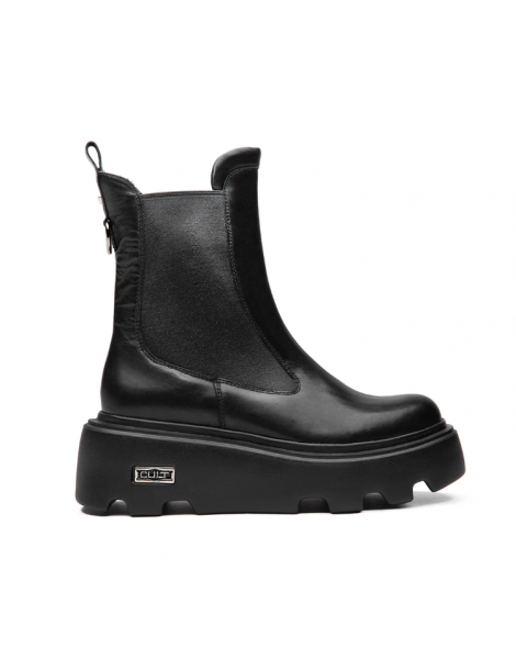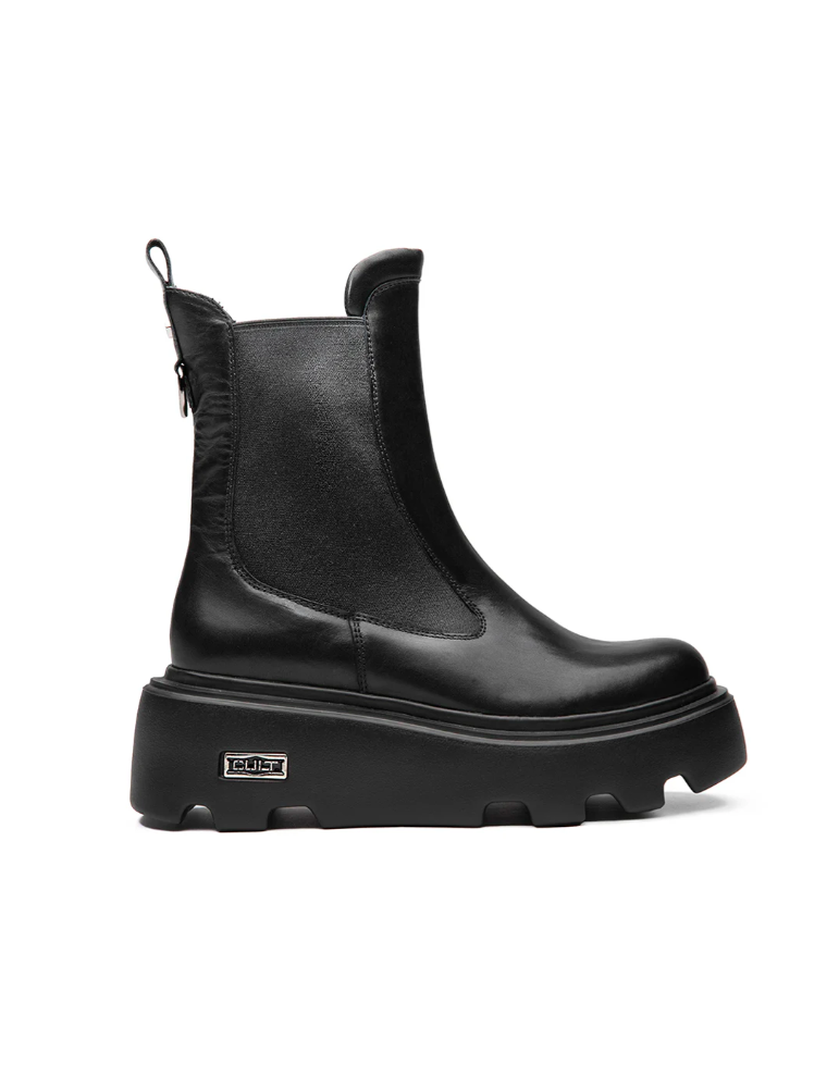 Un nuovo Beatle NEW ROCK d’impatto per un look deciso e una calzata avvolgente. La silhouette in pelle nera è scolpita e potente, poggiata su un fondo chunky zigrinato che offre grip e stabilità ad ogni passo. I dettagli metallici e il logo CULT sulla placca laterale aggiungono un tocco glam-rock che firma l’estetica con carattere. Pensato per chi ama distinguersi con stile e personalità.