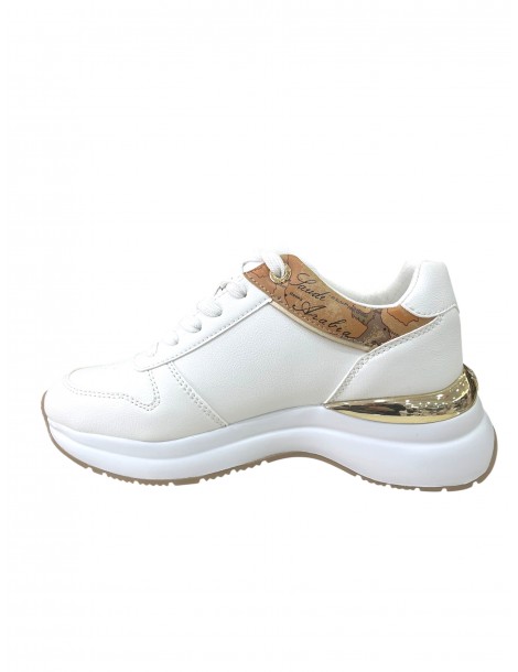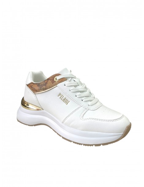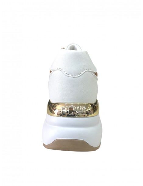 SNEAKERS IN ECOPELLE CON INSERTO GEO E LOGO IN RILIEVO . SUOLA IN GOMMA ALTA 6CM