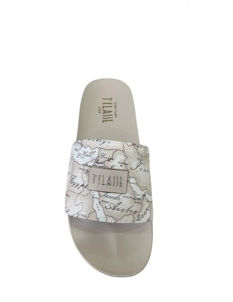Ciabatte Alviero Martini 1ª Classe con stampa Geo MILK e fascia logata, comode e dal design iconico.