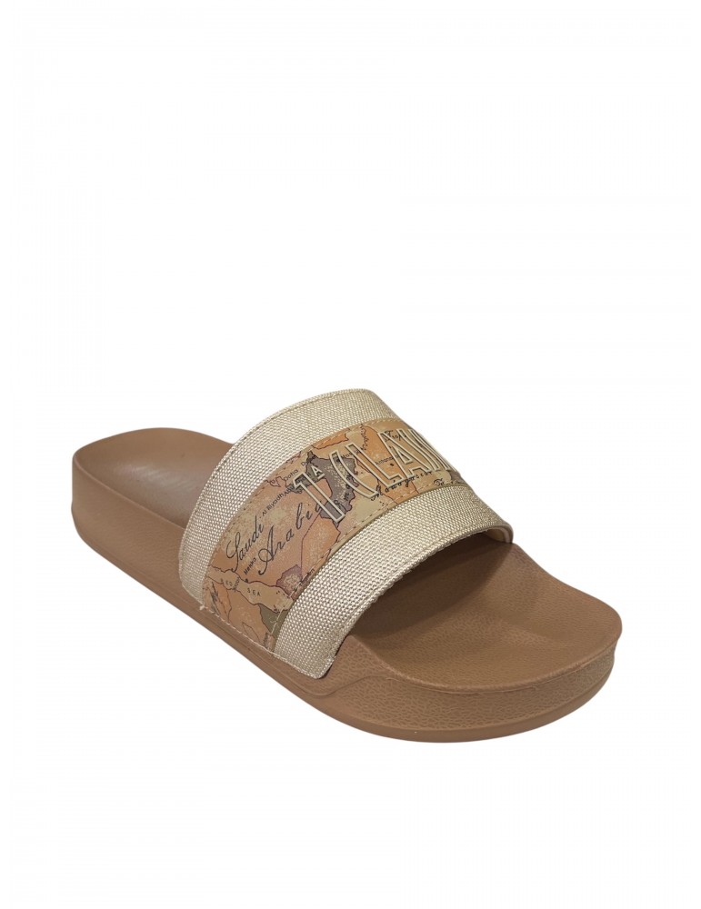 Ciabatte Alviero Martini 1ª Classe con stampa Geo e fascia logata, comode e dal design iconico.