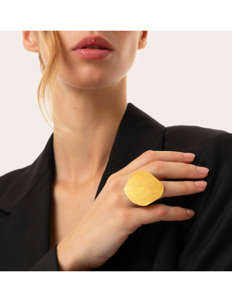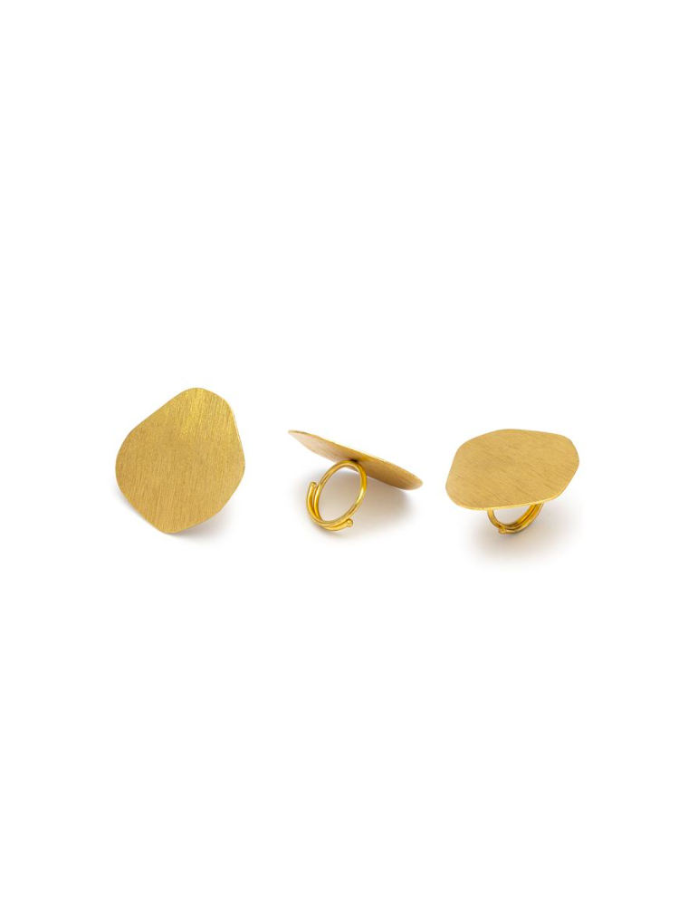 Anello in ottone riciclato con maxi placca irregolare satinata, protagonista assoluto di ogni look. Regolabile, ideale da abbinare ad anelli più sottili per un gioco di contrasti. Nickel tested. Lavorazione artigianale. Gioielli fatti a mano, unici e artigianali, perfetti per tutti i tuoi look o come idea regalo.