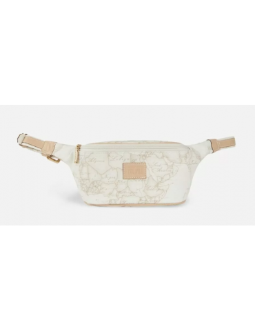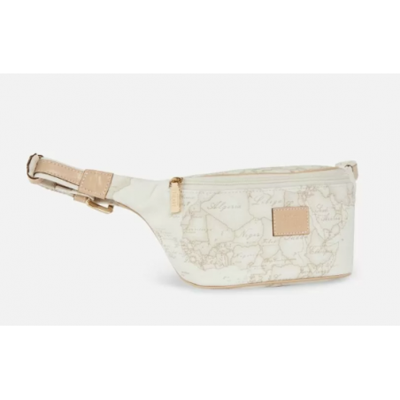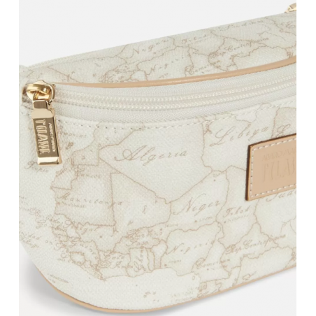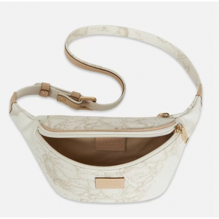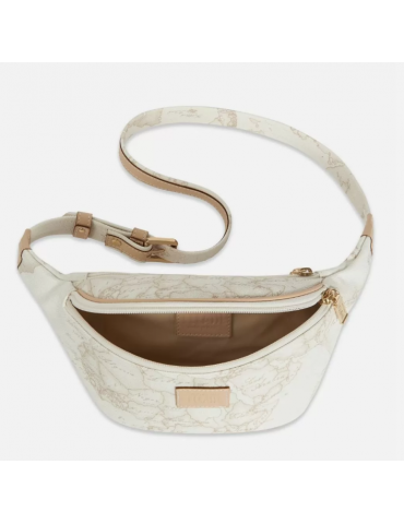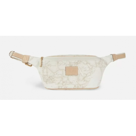 Marsupio in tessuto stampato con cartina geografica Geo White, con cintura regolabile, chiusura con zip, targhetta con logo 1AClasse. L'accessorio ideale per completare un outfit casual.